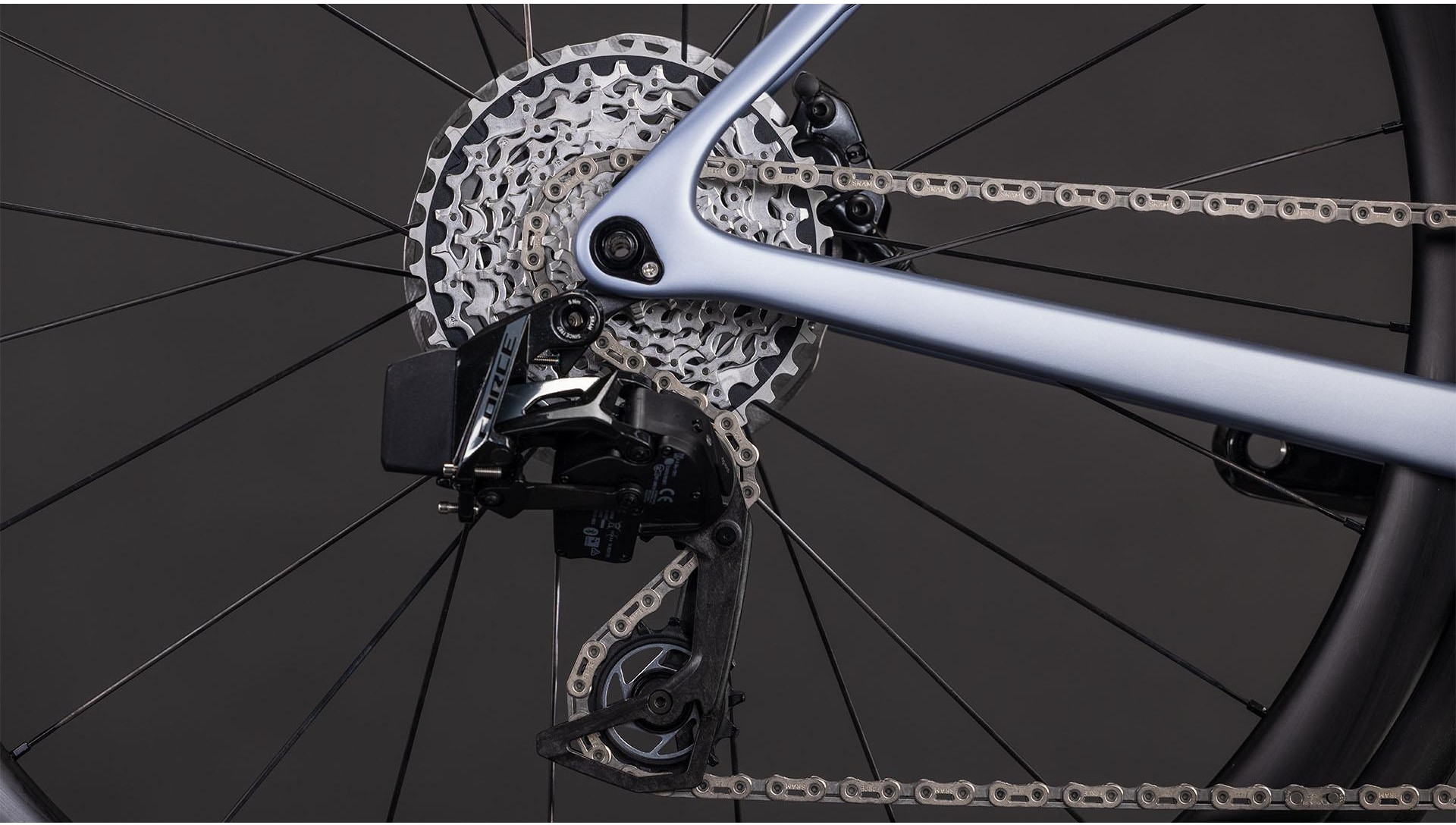 • Transmission SRAM Force AXS électronique 2×12, passages de vitesses précis et rapides