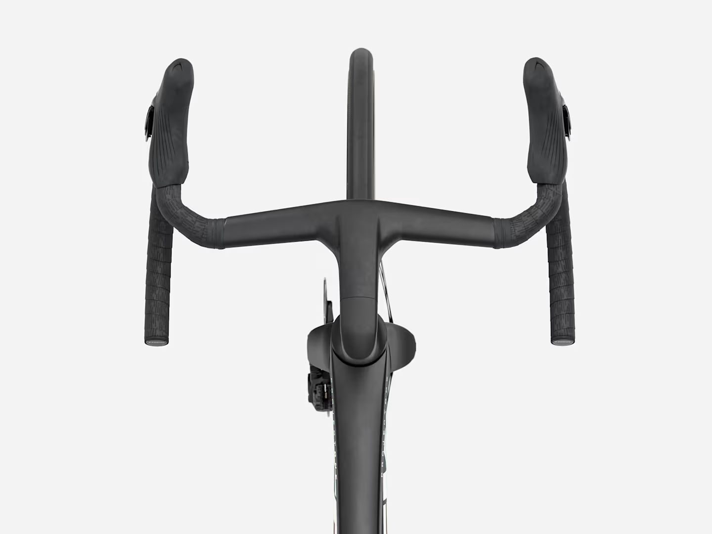 Cintre/potence intégré Trek Aero RSL Route, OCLV Carbon, Race Fit, profondeur de 80 mm, hauteur de 124 mm, largeur de 35 cm aux cocottes, largeur de 38 cm dans les creux, longueur de potence de 80 mm