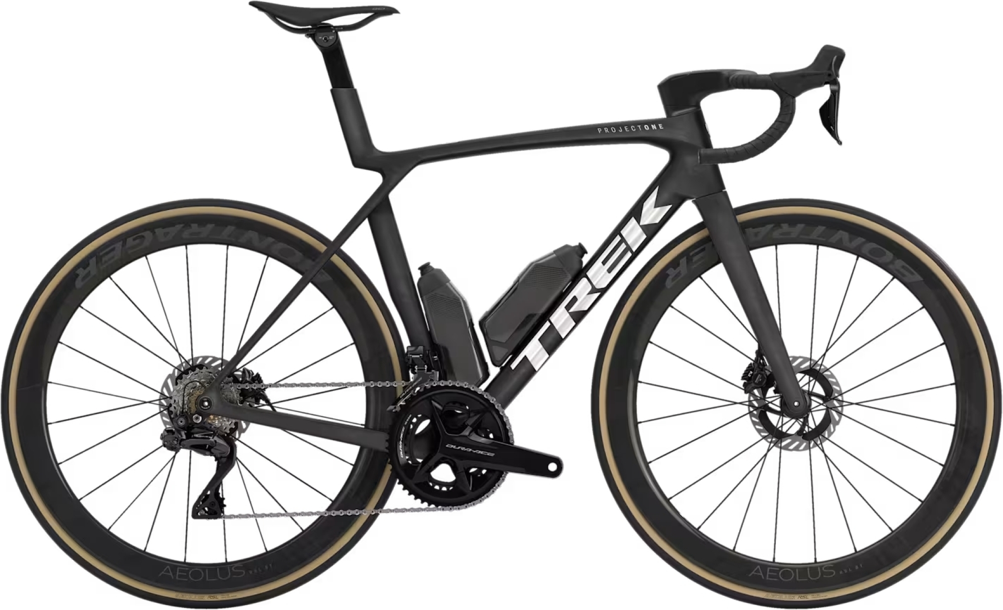 Madone 8e gén. tout en carbone, pivot conique en carbone, acheminement interne des câbles de frein, freins à disque à fixation Flat-Mount, axes traversants cannelés de 12×100 mm