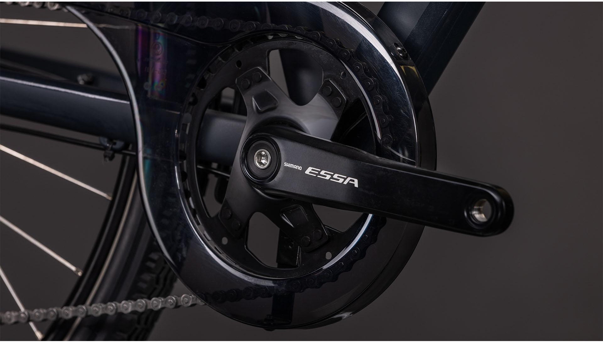 • Transmission 1×8 Shimano Essa, large plage de rapports, changement simple