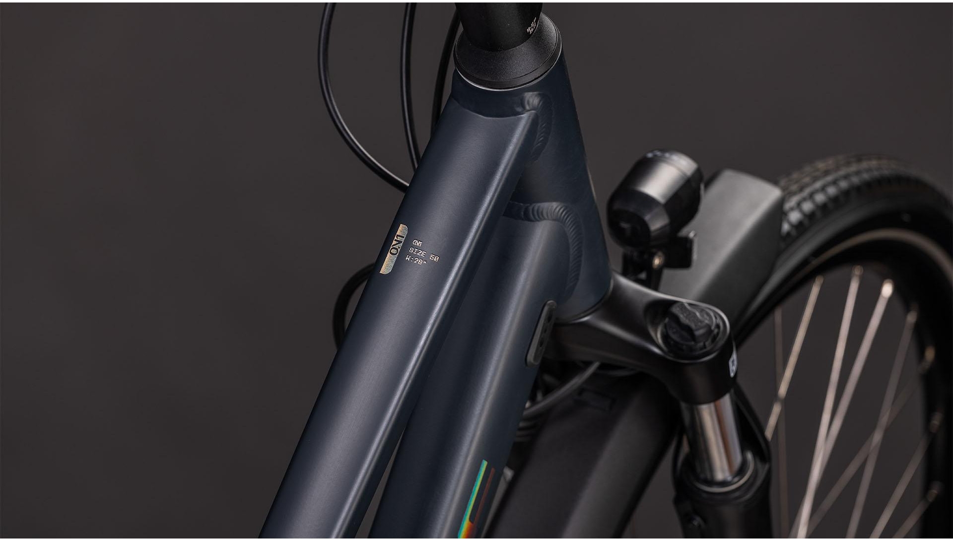 • Cadre aluminium double-butté avec géométrie Efficient Comfort et câblage interne, béquille flat mount